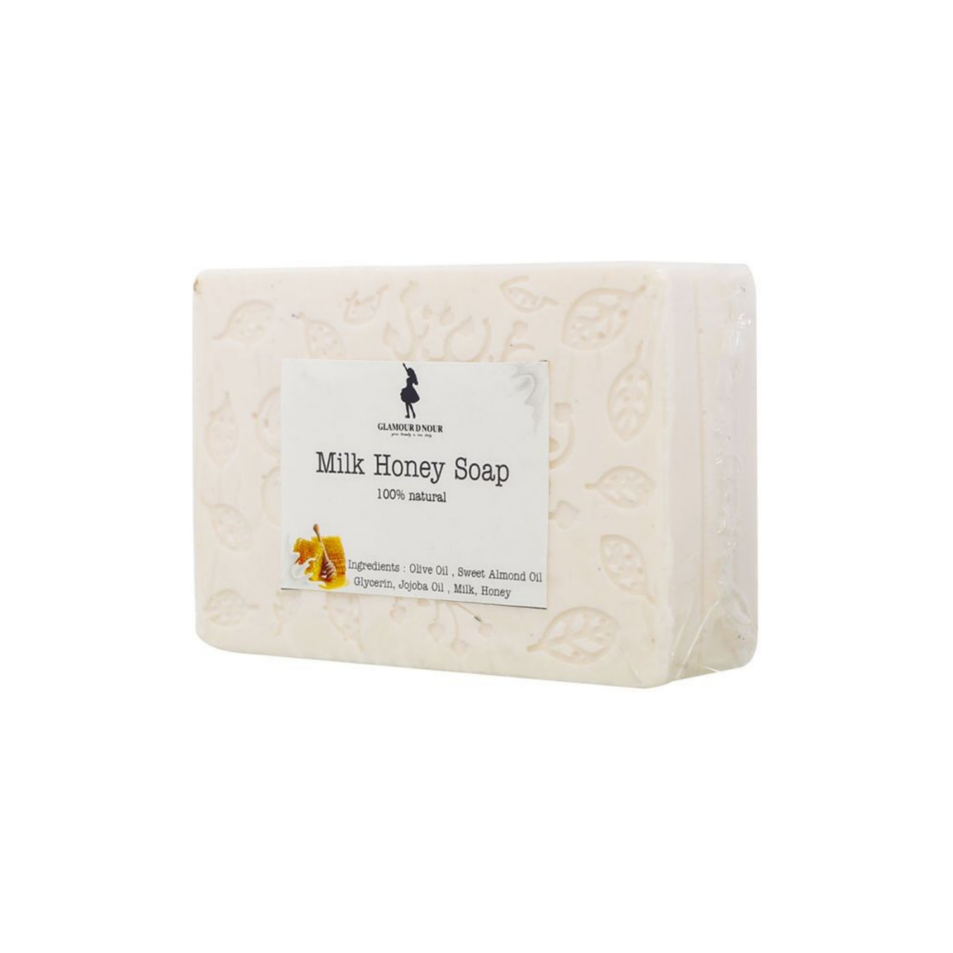 صابون الحليب والعسل غني بالعديد من الأشياء مثل العسل للعناية ببشرتك وتركها ناعمة ورطبة. يساعد حمض اللاكتيك في تقليل ظهور التجاعيد وعلامات الشيخوخة. فيتامين E يغذي ويجدد خلايا الجلد، كما يجدد بشرتك ويفتحها.