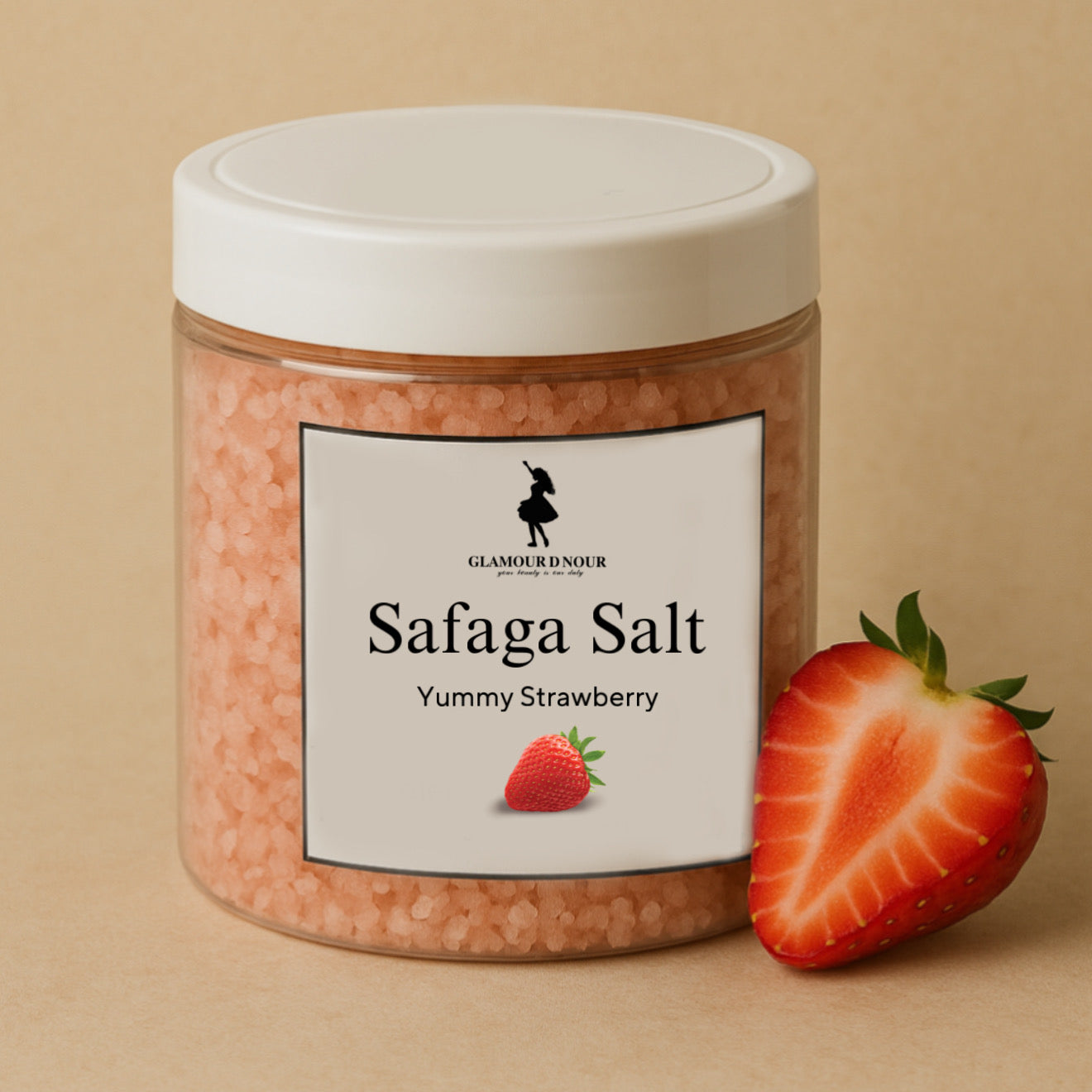 مقشر طبيعي فاخر للجسم مصنوع من ملح البحر الغني بالمعادن من سفاجا، وممزوج بزيت الفراولة النقي وفيتامين E.