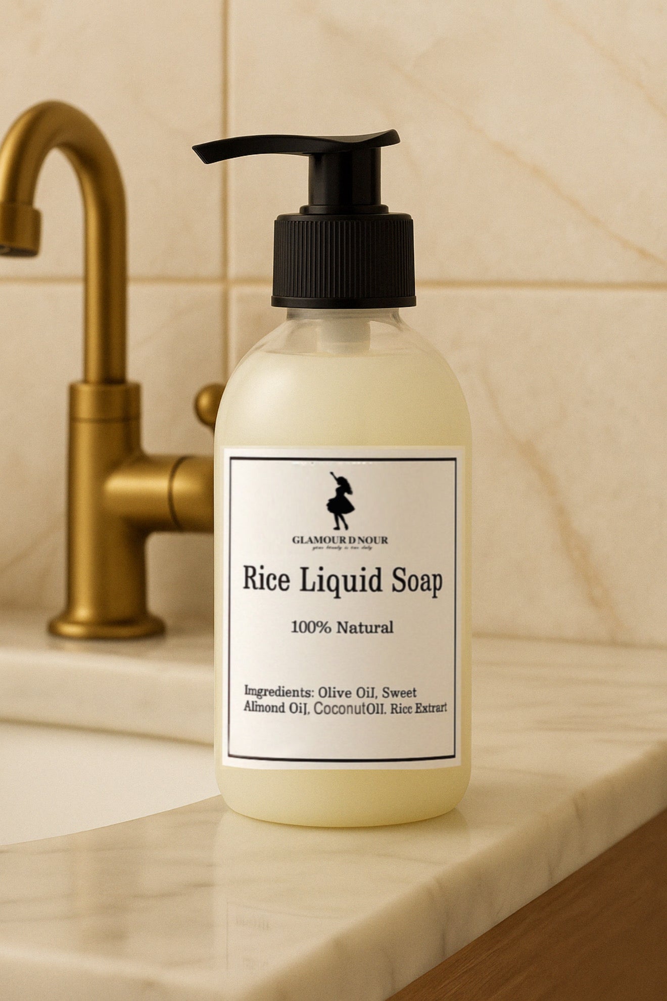 Rice Liquid Soap: A luxurious foaming cleanser that nourishes while washing away impurities for all-day freshness.